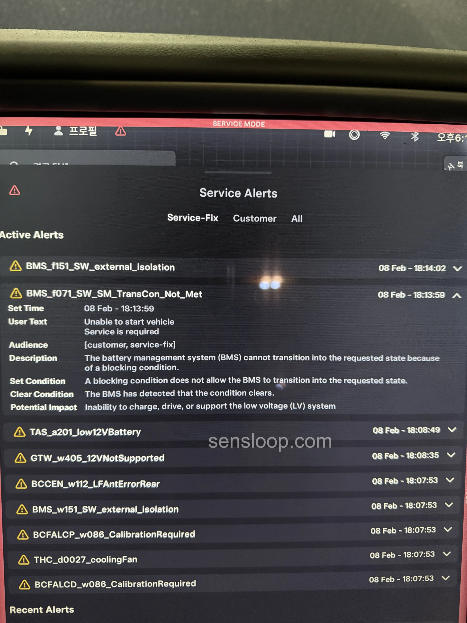 차량이 정상적으로 주행 되다가 갑자기 “Unable to start vehicle” 메시지가 발생합니다. 시동이 걸리지 않고 차량이 완전히 멈춘 상태로 이어지는 경우입니다. 1. 에러코드 개요 BMS_f071_SW_SM_TransCon_Not_Met 즉,👉 차량이 주행 상태로 넘어갈 조건이 맞지 않아 차단된 상태입니다. 2. 메뉴얼 해석 The battery management system (BMS) cannot transition into the requested state because of a blocking condition. → BMS가 … 더 읽기