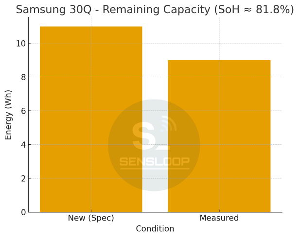 SoH(Wh) = (9.041 Wh / 11 Wh) ร 100% โ 81~82%