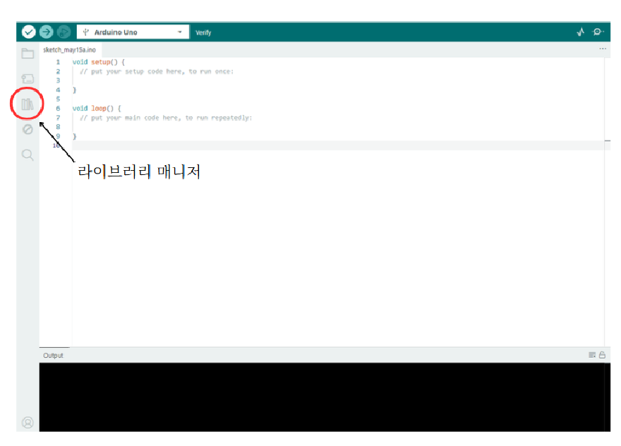 아두이노 IDE 상단 메뉴에서 스케치 > 라이브러리 포함 > 라이브러리 관리를 클릭합니다.