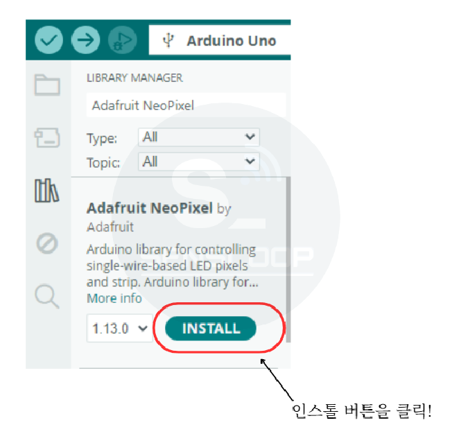 상단 검색창에 “Adafruit NeoPixel”을 검색하기 !