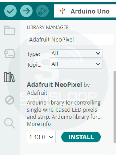 WS2812B RGB 링을 제어하려면 Adafruit NeoPixel 라이브러리를 먼저 설치해야 합니다.